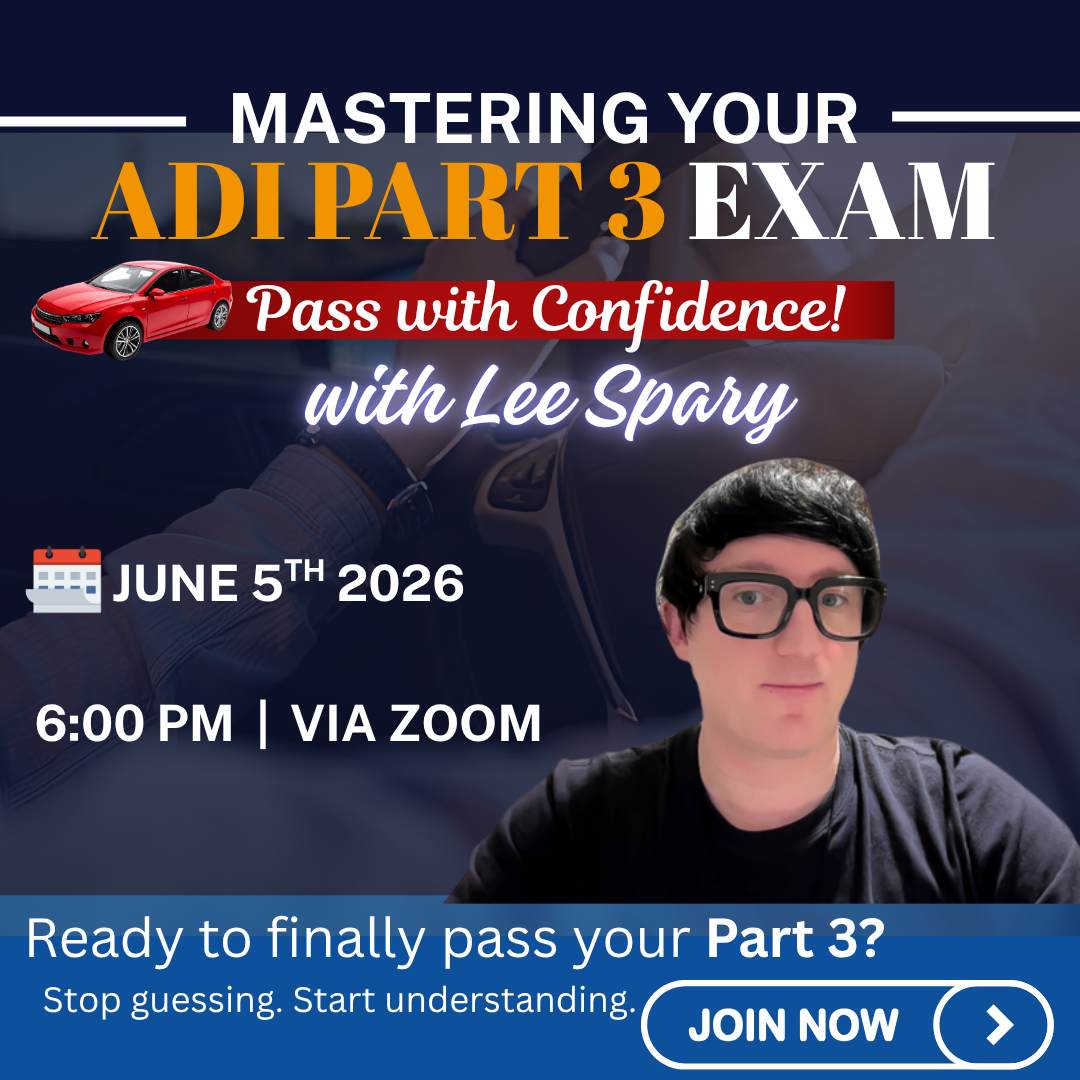Mastering your ADI Part 3 exam Struggling to make sense of the ADI Part 3? This workshop will give you a crystal-clear understanding of what the examiners are really looking for and how to deliver it with confidence. Led by the ‘ADI Doctor’ and Intelligent Instructor Training Provider of the Year, Lee Spary will help […]